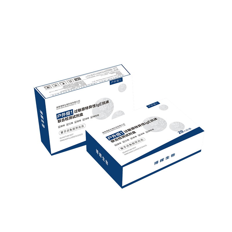 This product utilizes quantum dot immunochromatographic fluorescence technology for in vitro quantitative detection of specific IgE antibodies against common outdoor allergens in human serum or plasma.