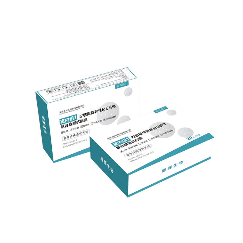 This product utilizes quantum dot immunochromatographic fluorescence technology for in vitro quantitative detection of common indoor allergen-specific IgE antibodies in human serum or plasma.